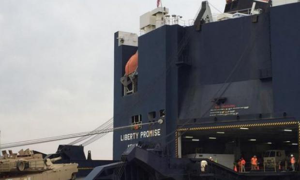 Το συγκεκριμένο πλοίο θα μεταφέρει στρατιωτικό εξοπλισμό του Αμερικανικού Στρατού, οι πληροφορίες κάνουν λόγο για «1450 οχήματα και κομμάτια εξοπλισμού».