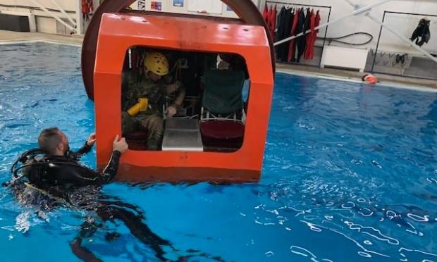 Η αμερικανική πρεσβεία στην Ελλάδα δημοσίευσε στιγμιότυπα από πρόσφατη συνεκπαίδευση Ελλήνων-Αμερικανών σε σχολείο διαφυγής από βυθιζόμενο ελικόπτερο (helo dunker).