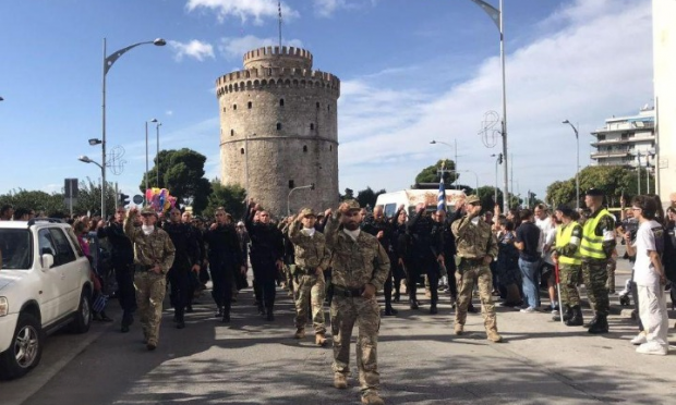 Οι ειδικά εκπαιδευμένοι άντρες των ΟΥΚ κέντρισαν τα βλέμματα σε ακόμα μία παρέλαση. Με τον κόσμο να παραμένει στους δρόμους της πόλης, οι κομάντος τραγούδησαν με μια φωνή το «Μακεδονία ξακουστή» με τις εικόνες να καταγράφονται από κινητά τηλέφωνα και να ανεβαίνουν στο διαδίκτυο.