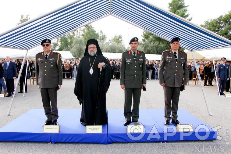Στη δοξολογία χοροστάτησε ο μητροπολίτης Μεσσηνίας Χρυσόστομος, ενώ όταν οι νέοι στρατιώτες ορκίστηκαν, ο διοικητής του 9ου Συντάγματος Πεζικού, συνταγματάρχης (ΠΖ) Δημήτριος Λυμπερέας, διάβασε την ημερήσια διαταγή, λέγοντάς τους, μεταξύ άλλων, ότι πλέον αποτελούν την ασπίδα και το δόρυ τους έθνους. Μια ασπίδα, όπως τη χαρακτήρισε, ατσάλινη και ένα δόρυ αιχμηρό, έτοιμο να κατακεραυνώσει κάθε επίδοξο επιβουλέα των ιερών και οσίων της Ελλάδας. Επίσης, ανέφερε ότι ιδιαίτερα σήμερα, που αμφισβητούνται αναφαίρετα δικαιώματα, καθίσταται περισσότερο από ποτέ επιτακτική η ανάγκη για επαγρύπνηση, εγρήγορση, αμυντική θωράκιση και εθνική ομοψυχία, για «να αντιμετωπιστεί κάθε κίνδυνος που ελλοχεύει και καραδοκεί για την πατρίδα».