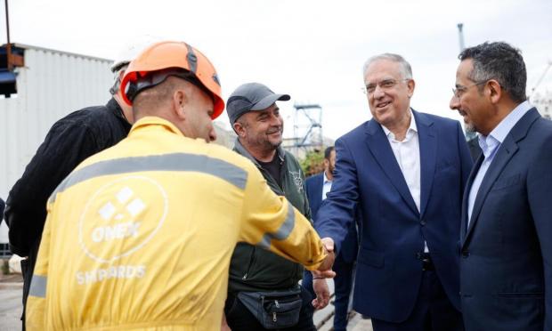 Στη συνέχεια επισκέφτηκαν τα Ναυπηγεία Ελευσίνας, όπου τους υποδέχθηκε ο Πρόεδρος και Διευθύνων Σύμβουλος της ONEX Shipyards & Technologies, Πάνος Ξενοκώστας.
