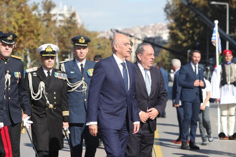 Παρουσία του Προέδρου της Δημοκρατίας, Κωνσταντίνου Τασούλα, του πρωθυπουργού Κυριάκου Μητσοτάκη, των υπουργών Άμυνας Ελλάδας και Κύπρου, Νίκου Δένδια και Βασίλη Πάλμα, των προέδρων του ΠΑΣΟΚ και του ΣΥΡΙΖΑ, εκπροσώπων κομμάτων, βουλευτών, του δημάρχου Θεσσαλονίκης και της ηγεσίας των Ενόπλων Δυνάμεων, πραγματοποιείται η φετινή στρατιωτική παρέλαση στη Θεσσαλονίκη.
