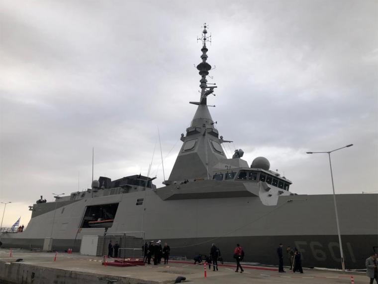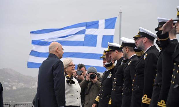 Η συνάντηση των δύο υπουργών πραγματοποιείται επί της φρεγάτας «Κίμων» της πρώτης ελληνικής Belharra.