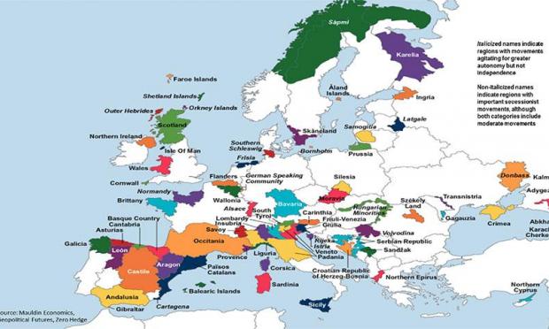 «Πολλές περιοχές στην Ευρώπη έχουν έντονα αποσχιστικά κινήματα (π.χ. Σκωτία, Καταλονία, Βάσκοι, Φλάνδρα, Βένετο) ή έχουν πολιτικά κόμματα που ζητούν μεγαλύτερη κυβερνητική αυτονομία της κυβέρνησης», γράφουν οι συντάκτες της έκθεσης.