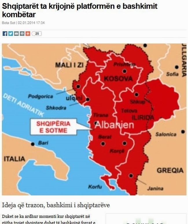 Αλλωστε, το όνειρο της δημιουργίας της «Μεγάλης Αλβανίας» διδάσκεται στα σχολεία προετοιμάζοντας την νέα γενιά των Αλβανών . Πρόκειται για εδάφη που περιλαμβάνουν την ελληνική Ήπειρο, Πρέβεζα, Κέρκυρα , σερβικά εδάφη (Μπουγιάνοβατς), το Μαυροβούνιο κά.