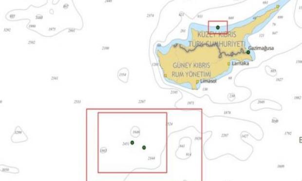 Με δύο νέες παράτυπες NAVTEX, το Τουρκικό Πολεμικό Ναυτικό, έχει δεσμεύσει θαλάσσια ζώνη έκτασης περίπου 20.000 τετρ. χιλιομέτρων νοτιοδυτικά της Κύπρου για αύριο.