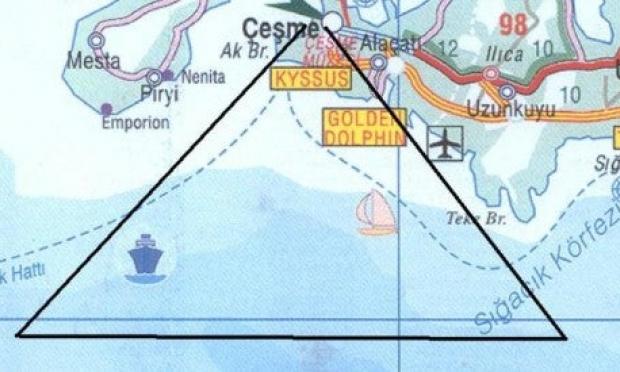 Το «Τρίγωνο» αυτό βρίσκεται σε μια πολύ ευαίσθητη περιοχή, ανάμεσα στα χωρικά ύδατα της Ελλάδας και της Τουρκίας, στην περιοχή που περικλείετε από τον Τσεσμέ, το κόλπο του Σιγατζίκ στις μικρασιατικές ακτές και στην θαλάσσια περιοχή νοτιοδυτικά της Χίου, όπως υποστηρίζει ο τουρκικός τύπος. Στην περιοχή αυτή λοιπόν κατά καιρούς έχουν γίνει πολλά ναυάγια από αρχαιότατων χρόνων και κατά την βυζαντινή εποχή, με αποτέλεσμα οι κάτοικοι της περιοχής είτε Έλληνες, είτε στη συνέχεια Τούρκοι, να την ονομάσουν τους περασμένους αιώνες σαν «Τρίγωνο του Διάβολου».