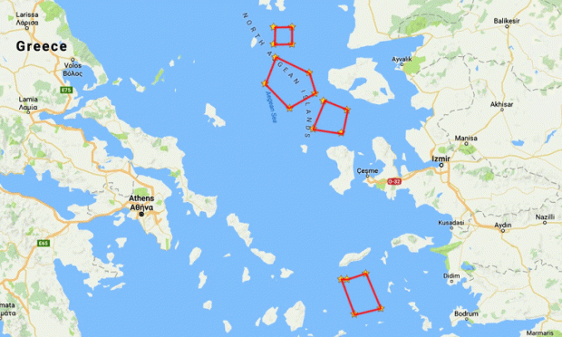 Καθώς επίσης Πέμπτη και Παρασκευή οι Τούρκοι έχουν δεσμεύσει μια πολύ  μεγάλη περιοχή  νοτίως της Ικαρίας μέχρι την Μύκονο και την Αμοργό.