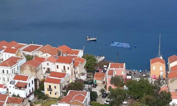 Άνδρες της ομάδας Καταδρομών μαζί με βατραχανθρώπους του λιμενικού βούτηξαν από κοινού στα παγωμένα νερά στο ακριτικό ελληνικό νησί, το Καστελόριζο, στο λιμάνι Μεγίστη και άπλωσαν την μεγαλύτερη υποβρύχια ελληνική σημαία στα χρονικά.