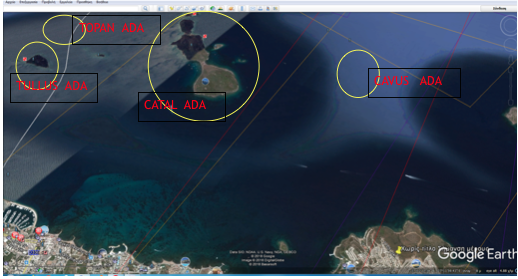 CAVUS ADA=0:04’ -0:09΄, CATAL ADA=1:33΄-1:39΄,TOPAN ADA=1:33΄-1:39΄