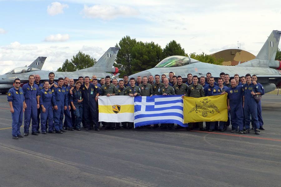 Δείτε όμως τι σήκωσαν οι Ιπτάμενοι και το προσωπικό της Μοίρας των Κεραυνών των F-16 της 111 ΠΜ στο «TLP 2015» του ΝΑΤΟ … Τον Κεραυνό της Μοίρας ,Τον Δικέφαλο Αετό και την Ελληνική Σημαία δίπλα -δίπλα …Αυτά είναι τα παιδιά της Μοίρας !!