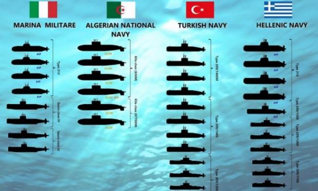 Ένα πολύ ενδιαφέρον infographic με τις υποβρύχιες δυνάμεις στην Μεσόγειο δημοσίευσε πριν από λίγες ημέρες το έγκυρο naval analyses.