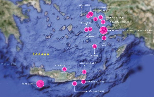 Οι περισσότερες βραχονησίδες που θέλει να αμφισβητήσει η Τουρκία ανήκουν σε νησιωτικά συμπλέγματα στο κεντρικό και νότιο Αιγαίο, αλλά και κοντά στις ακτές της Κρήτης.