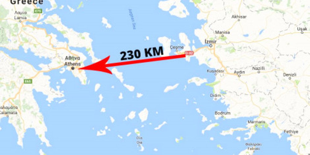 H AKGazete παραθέτει μάλιστα χάρτη με την απόσταση από τη Σμύρνη έως την Αττική, που είναι 230 χιλιόμετρα, στέλνοντας άλλο ένα προκλητικό μήνυμα στην Ελλάδα.