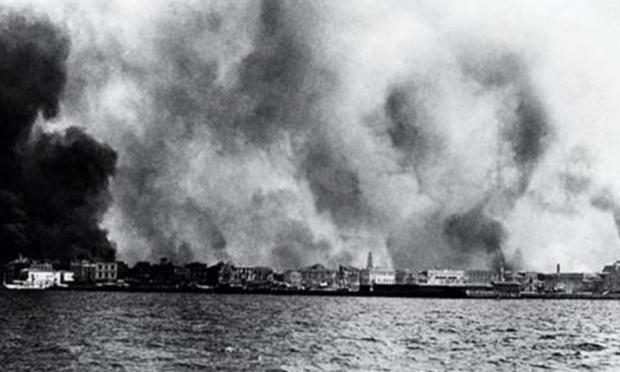 Ο κόσμος περίμενε βασανιστικά στις ουρές για να περάσει στα πλοία, ενώ οι Τούρκοι στρατιώτες διενεργούσαν εξονυχιστικούς ελέγχους, αφαιρώντας τα τιμαλφή από τον κόσμο και συλλαμβάνοντας όσους άντρες ήταν πάνω από 15 ετών για να τους στείλουν στα τάγματα εργασίας. Οι μανάδες έντυναν τα αγόρια τους με γυναικεία ρούχα για να τα περάσουν στα πλοία, ξετυλίγονταν φρικτές εικόνες ανθρώπινου πόνου και δυστυχίας. Ο κόσμος έπεφτε στη θάλασσα να κολυμπήσει μέχρι τα καράβια των ξένων, και οι Τούρκοι πυροβολούσαν στη θάλασσα. Τα πλοιάρια βούλιαζαν από το βάρος ενώ από πίσω η πόλη καιγόταν και η φωτιά είχε φτάσει μέχρι και τα παραλιακά κτήρια.