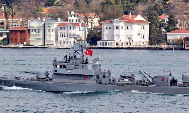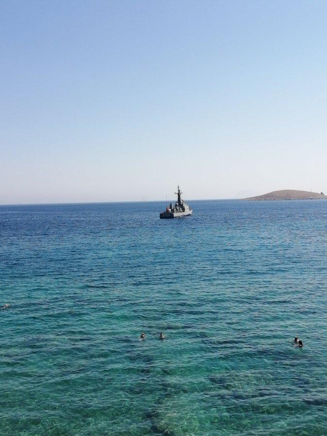 Η Πυραυλάκατος MIZRAK (P332) του Τουρκικού Ναυτικού σε θέση απόκρυψης πίσω από βραχονησίδα στην Χερσόνησο της Κνιδού (Datça) στις 17:15 της 23ΙΟΥΛ2020.