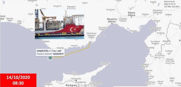Συνεχίζονται και οι παράνομες δραστηριότητες του «Oruc Reis» δυτικά της Κύπρου, μεταξύ Καστελόριζου και Ρόδου.