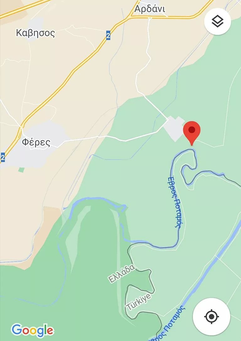 Η κόκκινη κουκίδα δείχνει το σημείο όπου κατασκευάζεται ο νέος φράχτης στα ελληνοτουρκικά σύνορα στον Έβρο