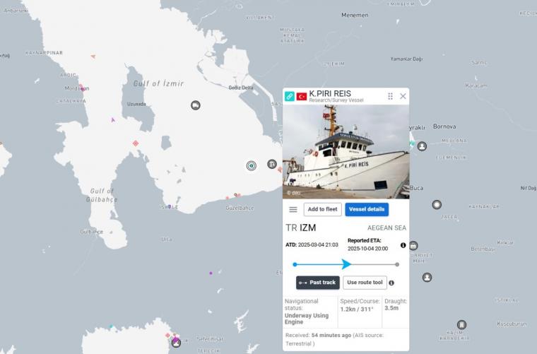 Το τουρκικό ωκεανογραφικό σκάφος Πίρι Ρέις απέπλευσε από το λιμάνι της Σμύρνης το βράδυ της Παρασκευής (3/10), στο πλαίσιο των επιστημονικό ερευνών που είχε ανακοινώσει η Άγκυρα μέσω NAVTEX.