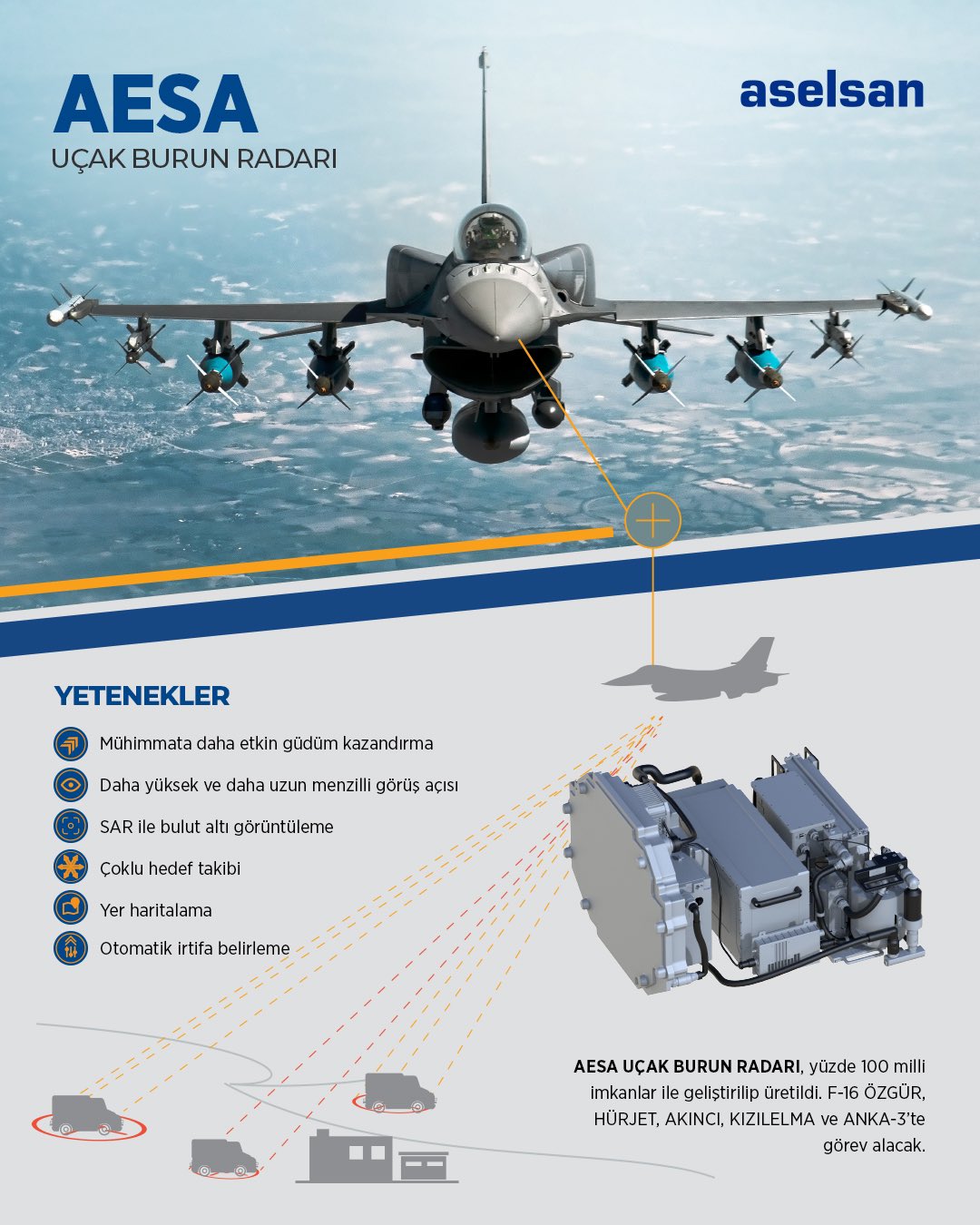Η εν εξελίξει ενσωμάτωση στα προγράμματα εκσυγχρονισμού F-16 Özgür και Özgür II στοχεύει στην αναβάθμιση των μαχητικών της Τουρκίας σε πρότυπα γενιάς 4.5, ενισχύοντας την απόδοση των ραντάρ και την ευελιξία τους στη μάχη.