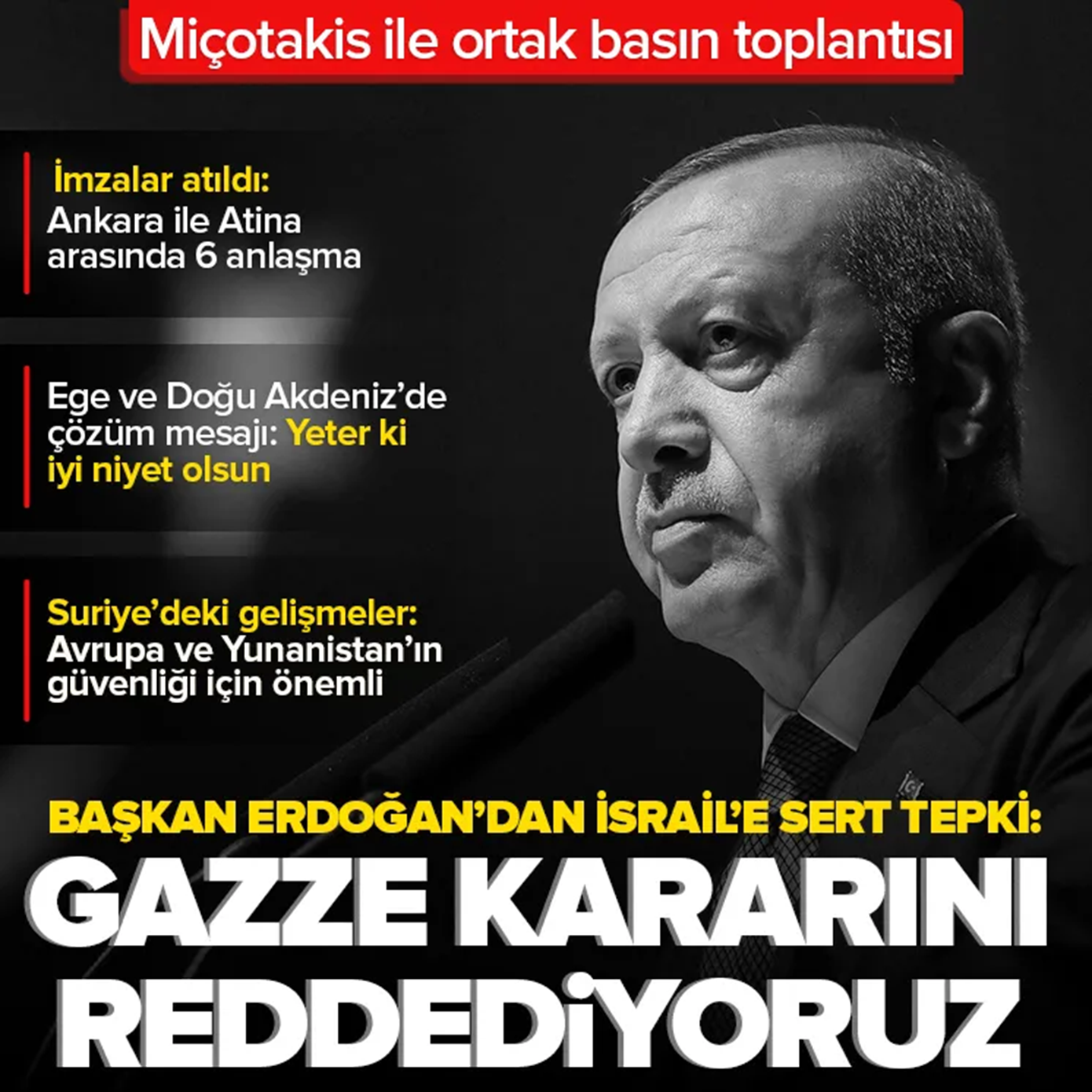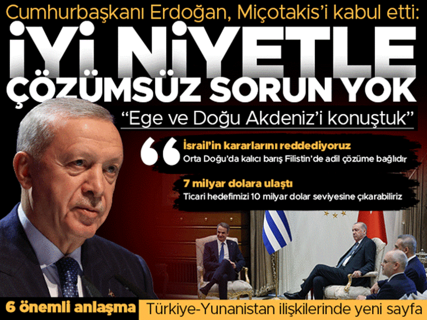Hürriyet: «Με καλή πίστη δεν υπάρχει αδιέξοδο», ήταν το κεντρικό μήνυμα, με την εφημερίδα να υπογραμμίζει πως ο Ερντογάν θεωρεί τα προβλήματα «δύσκολα αλλά όχι άλυτα». Η έμφαση δόθηκε στην ανάγκη για σεβασμό και συνεχή επαφή στο υψηλότερο επίπεδο.
