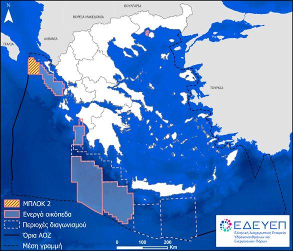 Το Μπλοκ 2 παραχωρήθηκε αρχικά στην κοινοπραξία των εταιρειών Total 50%, Edison 25% και ΕΛΠΕ 25%, τον Μάρτιο του 2018. Τον Φεβρουάριο του 2021 η Energean Hellas απέκτησε το μερίδιο 50% που κατείχε η Τotal στο Block 2 στο Βορειοδυτικό Ιόνιο και κατέστη, παράλληλα, Διαχειριστής (Οperator) στη συγκεκριμένη παραχώρηση.