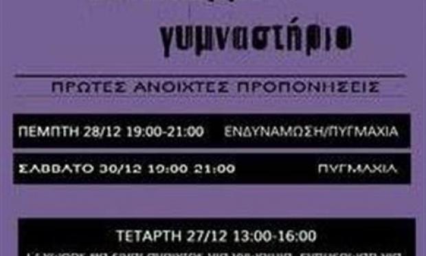 Ο χώρος, σύμφωνα με την ομάδα που έχει προχωρήσει στην κατάληψη του γυμναστηρίου, θα ειναι ανοιχτός για γνωριμία και ενημέρωση για τα υπόλοιπα τμήματα που θα λειτουργήσουν.