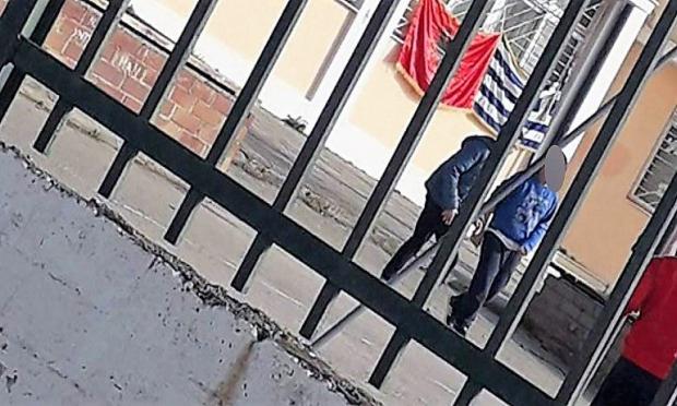 Η ελληνική σημαία είχε κατέβει από τον ιστό και είχε τοποθετηθεί ανάποδα δίπλα στην αλβανική, με αφορμή την έναρξη των μαθημάτων εκμάθησης της Αλβανικής γλώσσας.