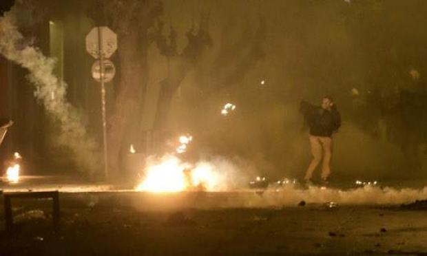 Νεαρά άτομα, με καλυμμένα τα χαρακτηριστικά του προσώπου τους, επιτέθηκαν τα μεσάνυχτα με βόμβες μολότοφ εναντίον διμοιρίας των ΜΑΤ, που βρισκόταν στην οδό Χαριλάου Τρικούπη, ενώ αμέσως μετά διέφυγαν στα στενά των Εξαρχείων.