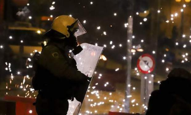 Πέτρες, ξύλα, πυροσβεστήρες και δακρυγόνα είχε η σύγκρουση ΜΑΤ-αντιεξουσιαστών στο Κουκάκι το βράδυ της Τρίτης.