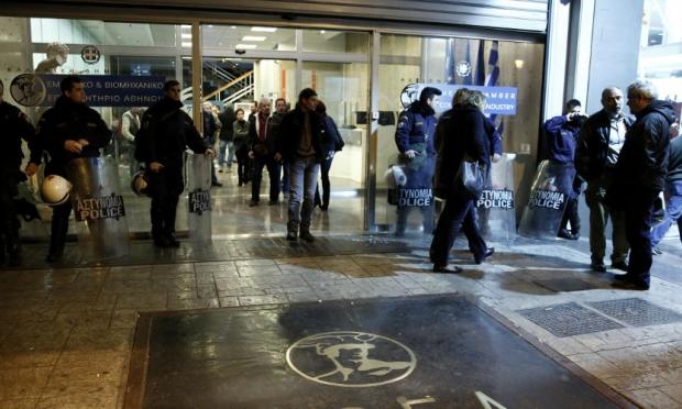 Η επίθεση με μπογιές από την είσοδο από Ακαδημίας. Σύμφωνα με πληροφορίες έχει γίνει μία προσαγωγή.