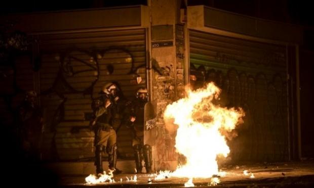 Νέος γύρος επιθέσεων κουκουλοφόρων σημειώθηκε μισή ώρα μετά τα μεσάνυχτα στα Εξάρχεια, με βροχή από βόμβες μολότοφ σε βάρος της στατικής διμοιρίας των ΜΑΤ, επί της οδού Χαριλάου Τρικούπη, που περιφρουρεί τα γραφεία του ΠΑΣΟΚ.