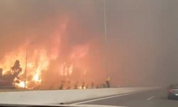 Οι πρώτες πληροφορίες έκαναν λόγο για ουρά χιλιομέτρων από αυτοκίνητα που δεν μπορούσαν να ταξιδέψουν μια απόσταση περίπου 17 χιλιομέτρων λόγω της πυρκαγιάς.