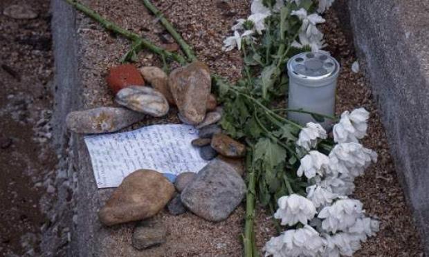 Ενα κεράκι, λίγα λουλούδια και ένα γράμμα πάνω στο βράχο, συγκλονίζουν.