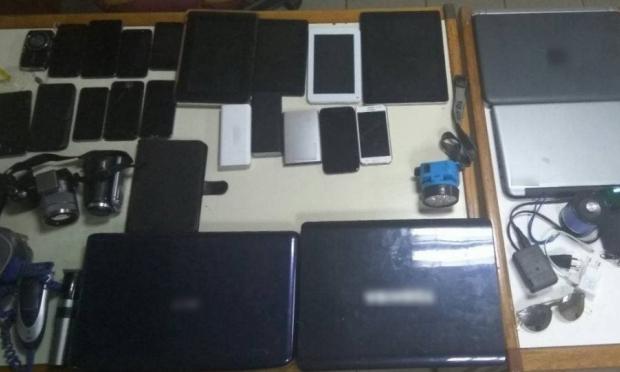Όλοι συνελήφθησαν με οργανωμένη επιχείρηση και στους χώρους του hot spot όπου διέμεναν βρέθηκαν 16 κινητά, οκτώ laptop, τρεις φωτογραφικές μηχανές, μια κάμερα, διάφορες ηλεκτρονικές και ηλεκτρικές συσκευές, επτά ρολόγια, κοσμήματα, αλλά και 18 ναρκωτικά χάπια μαζί με μικροποσότητα ακατέργαστης κάνναβης, κουκούλες, φακοί, γάντια και πλήθος κατσαβίδια, πένσα, κόφτες, σουγιάδες και άλλα διαρρηκτικά εργαλεία που κατασχέθηκαν