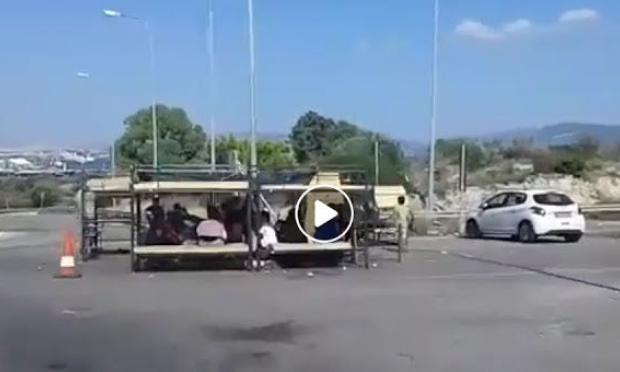 Οι λαθρομετανάστες έκλεισαν την παλιά Εθνική Οδό στην διασταύρωση μετά τα διυλιστήρια και λίγο πριν τις στροφές του Ευταξία.