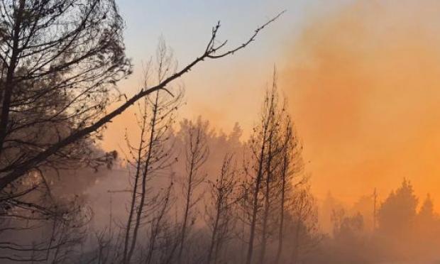 Σύμφωνα με πληροφορίες, το μέτωπο της φωτιάς απλώνεται σε ακτίνα ενός με ενάμισι χιλιομέτρου.