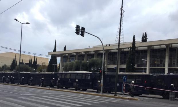 Οι κλούβες της αστυνομίας έχουν περικυκλώσει το κτίριο της αμερικάνικης πρεσβείας, ενώ αστυνομικοί βρίσκονται σε ετοιμότητα για την καθιερωμένη πορεία προς την πρεσβεία των ΗΠΑ.