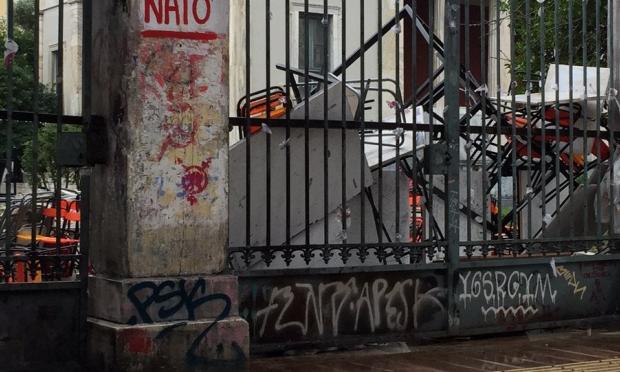 Πανό, αντιεξουσιαστικά συνθήματα , στεφάνια αλλά και θρανία, καρέκλες και ό,τι άλλο μπορούσε να χρησιμοποιηθεί ως ασπίδα των γνωστών «μπαχαλάκηδων» στα επεισόδια, είναι η εικόνα που αντίκρισαν σήμερα το πρωί , όσοι έτυχε να περνούν από το Πολυτεχνείο.