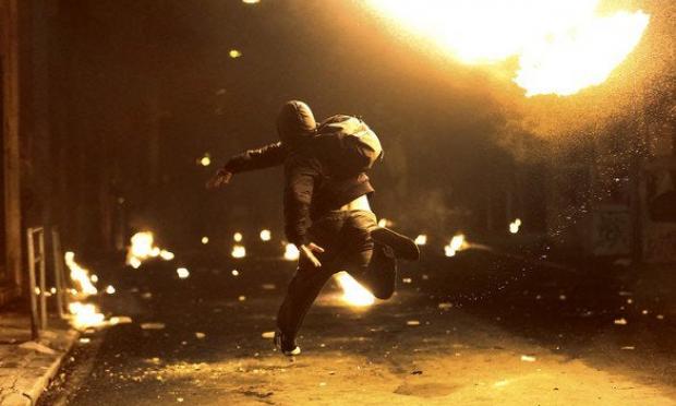 Σύμφωνα με πληροφορίες, λίγο μετά τις 7 το απόγευμα, ομάδα περίπου 20 κουκουλοφόρων πέταξε πέτρες, αντικείμενα και βόμβες μολότοφ.