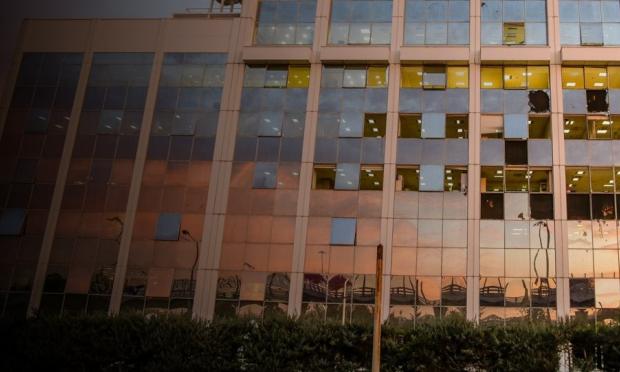 Οι εικόνες τόσο από το εξωτερικό όσο και από το εσωτερικό του κτιρίου αποτυπώνουν την καταστροφή: