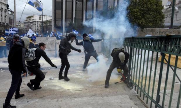 «Βομβαρδισμένο τοπίο» θυμίζει το Σύνταγμα, μετά το συλλαλητήριο για τη Μακεδονία και τα επεισόδια που ξέσπασαν.