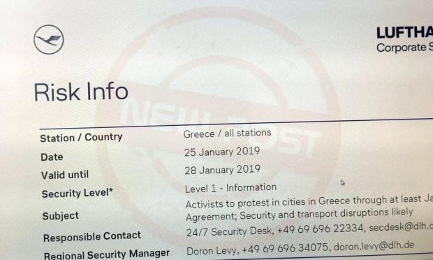 Οδηγίες στους ταξιδιώτες με προορισμό την Ελλάδα δίνει η Lufthansa, με αφορμή την κύρωση της Συμφωνίας των Πρεσπών.