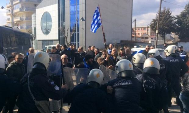 Οι συγκεντρώμενοι φώναζαν «προδότες», «η Μακεδονία είναι ελληνική», «γερά-γερά στα χνάρια του Μελά» και «Τσίπρα προδότη» όταν συγκρούστηκαν με τις ισχυρές δυνάμεις της Αστυνομίας που βρισκόταν από νωρίς εκεί για να αποκλείσουν το ενδεχόμενο οι διαδηλωτές να φτάσουν προς το σημείο που βρισκόταν η κυρία Γεροβασίλη.