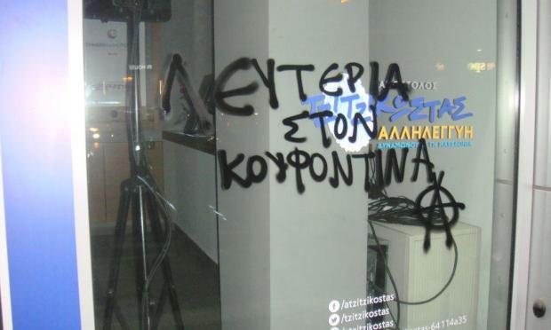 Παρέμβαση, όπως τη χαρακτηρίζουν, υπέρ του Κουφοντίνα πραγματοποίησαν αντιεξουσιαστές το βράδυ της Δευτέρας στο εκλογικό κέντρο του υποψήφιου περιφερειάρχη Απόστολου Τζιτζικώστα, στο κέντρο της Θεσσαλονίκης.