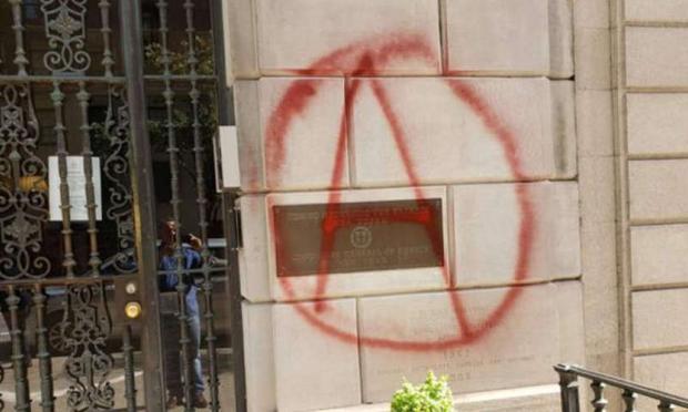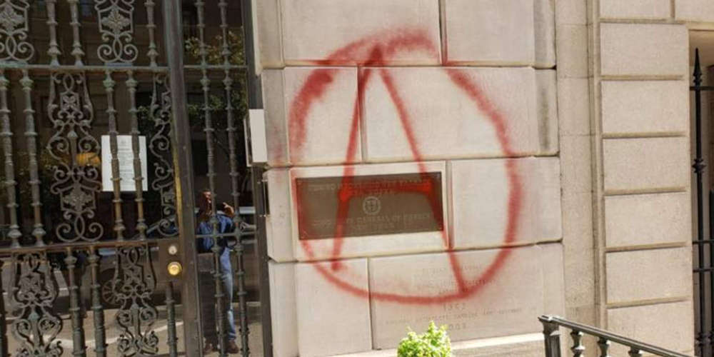Άγνωστοι βανδάλισαν το κτίριο του Γενικού Προξενείου της Ελλάδας στη Νέα Υόρκη, ζωγραφίζοντας το σύμβολο της αναρχίας.