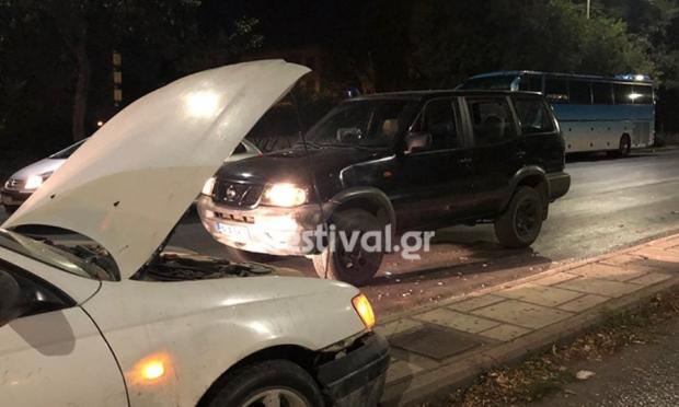 Εκείνοι επιβιβάστηκαν στο αυτοκίνητό τους. Ο οδηγός έβαλε όπισθεν και κινήθηκε με ταχύτητα προς τους αστυνομικούς. Έχασε τον έλεγχο του οχήματος και προσέκρουσε στον στύλο φωτεινού σηματοδότη, στη συμβολή της οδού Λαγκαδά με την οδό Μιχαήλ Καλού. Τα δύο άτομα εγκατέλειψαν το αυτοκίνητο και το έβαλαν στα πόδια. Οι αστυνομικοί της ΟΠΚΕ τους καταδίωξαν πεζοί.