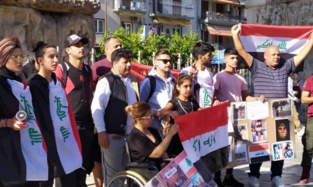 Κρατώντας πλακάτ με φωτογραφίες από αντικυβερνητικές διαδηλώσεις στο Ιράκ, που είχαν ως αποτέλεσμα τον θάνατο πολλών συμπατριωτών τους, ζήτησαν ειρήνη και καλύτερες συνθήκες διαβίωσης, φωνάζοντας συνθήματα κατά της ιρακινής κυβέρνησης.