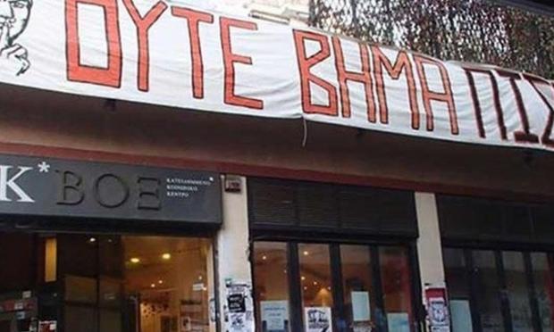 Παραθέτει, επίσης, φωτογραφία της κατάληψης του Βοξ (στη διασταύρωση των οδών Αραχώβης και Θεμιστοκλέους, στην πλατεία Εξαρχείων), στην οποία διακρίνεται πανό με το σύνθημα «Ούτε βήμα πίσω».