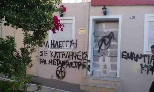 Όπως θα δείτε και στη φωτογραφία που ακολουθεί, οι δράστες έγραψαν συνθήματα στους τοίχους, καθώς και σύμβολα αναρχικών. Σύμφωνα με την ιστοσελίδα Piraeus Press δεν είναι η πρώτη φορά που γραφεία Τοπικής Οργάνωσης στον Πειραιά δέχονται επίθεση αντιεξουσιαστών.